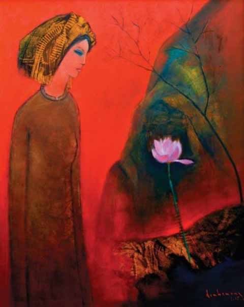 Summer Lotus, Oil on Canvas, by Đinh Cường.