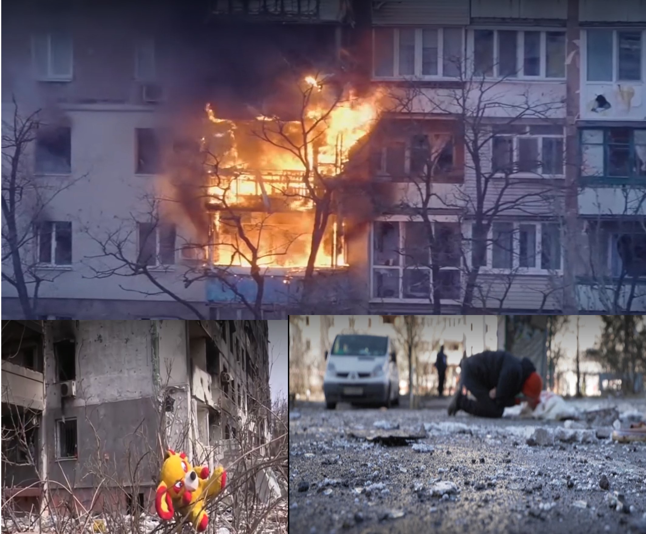 Hình ảnh những tòa nhà cháy, những thường dân với thương tích đầy mình đang khóc lóc, những bịnh viện sụp đổ, những đứa trẻ bị thương….. đã thu hút sự chú ý của toàn thế giới. Nga cố tình tấn công dân thường ở Mariupol là có thật qua những hình ảnh mà các phóng viên chụp được. Và việc giết hại thường dân là một tội ác trong chiến tranh.