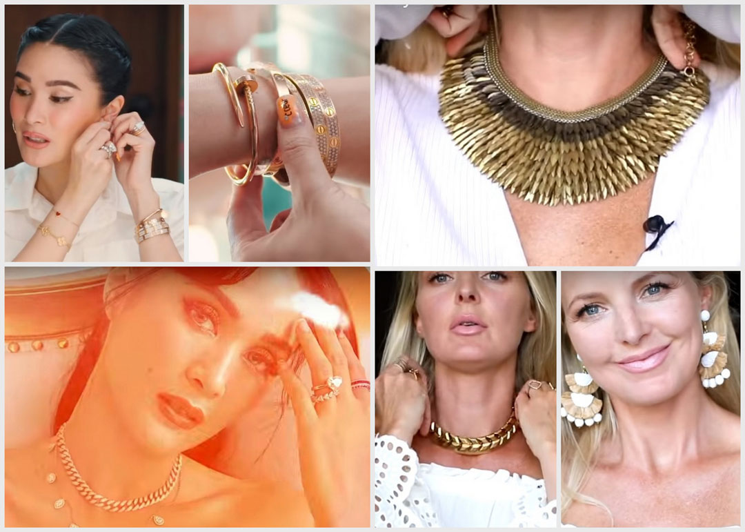 Nếu bạn thích mang nhiều nữ trang, thì nên chọn những kiểu áo thật dản dị, ít kiểu cọ, một màu càng tốt, để tạo chú ý tới những nữ trang mang trên cổ, bông tay , hay vòng tay.