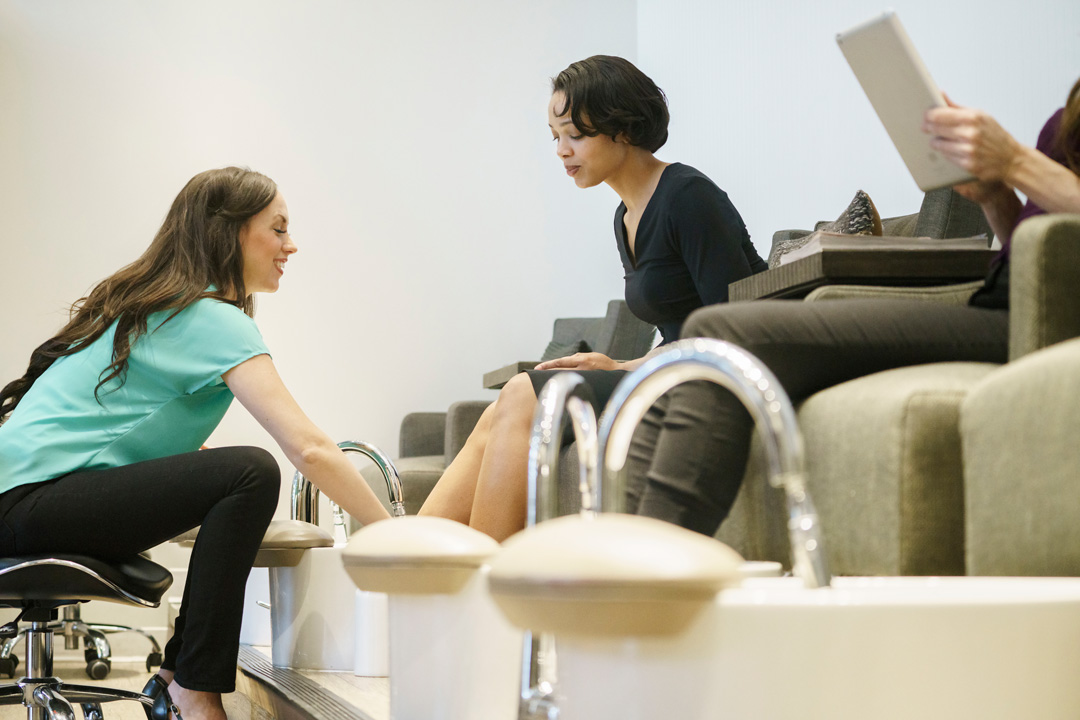 Những bồn nước ngâm rửa chân, phải làm sạch bằng xà bông và nước, sau đó khử trùng bằng chất tẩy trùng nhãn EPA loại diệt vi khuẩn, nấm độc, theo đúng phương pháp của hãng bào chế, sau khi dùng cho mỗi khách hàng, vào cuối ngày, và mỗi cuối tuần, theo bảng hướng dẫn an toàn và vệ sinh của HĐTM. Bảng nầy phải dán trên tường chỗ dễ thấy trong tiệm. Ngoài ra, bạn còn cần phải có sổ “Pedicue cleansing log”, theo qui định của HĐTM.