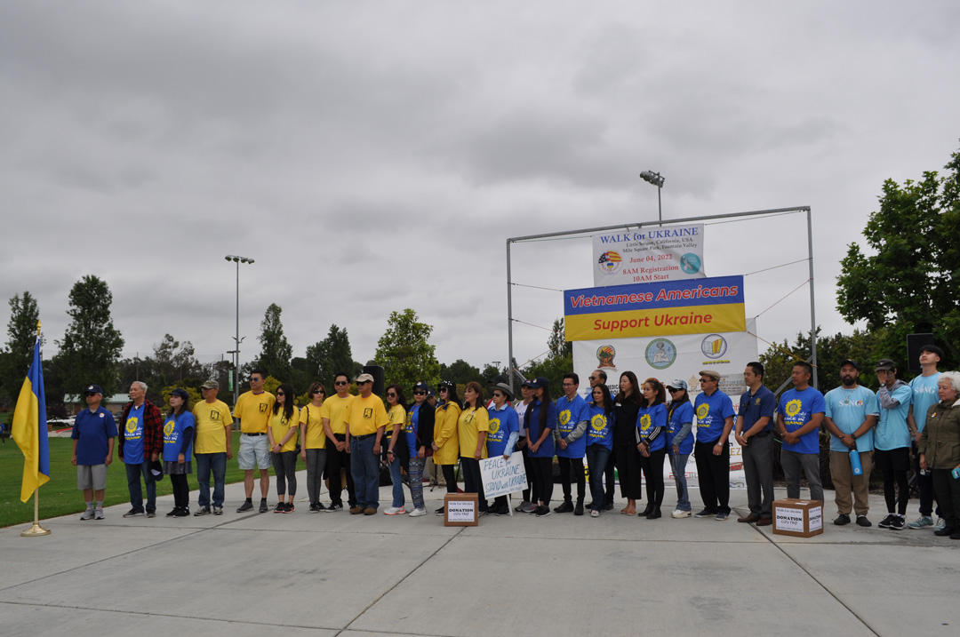 Trước khi buổi đi bộ bắt đầu, nhiều mạnh thường quân và các hội đoàn, đoàn thể đã lên đóng góp tài chính để ủng hộ, trong số có Hòa Thượng Thích Chơn Thành (thượng thủ Giáo Hội Phật Giáo Việt Nam Trên Thế Giới, viện chủ chùa Liên Hoa, Garden Grove) $1,000, Trung Tâm Văn Hóa Hồng Bàng $500, QT Golden Market Place $200, Hội Đồng Liên Kết Quốc Nội Hải Ngoại $300, Cộng Đồng San Diego $400, Nghị Viên Thành Phố Fountain Valley ông Ted Bùi $500, Trung tâm Y tế Micheal Đào $1,000, Ứng cử viên Thẩm Phán Tòa Thượng Thẩm Quận Cam Cô Jessica Cha ủng hộ $ 500, và rất nhiều các cơ sở thương mại, các hội đoàn, cá nhân đóng góp trước khi đoàn đi bộ bắt đầu, trong đó có Bác Sĩ Võ Đình Hữu, đại diện Hội Đồng Liên Kết Quốc Nội Hải Ngoại, ký tặng tại chỗ chi phiếu $300, và $100 tiền mặt cho buổi đi bộ gây quỹ Ukraine.