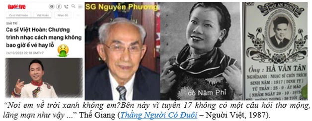 Xin nhường lời lại cho một ông bạn cố tri, vốn người đất Tràng An, một tác giả sinh trưởng trong lòng cách mạng: “Nơi em về trời xanh không em… ? Bên này vĩ tuyến 17 không có một câu hỏi thơ mộng, lãng mạn như vậy, còn các Vũ Hoàng Chương, Khái Hưng, Hàn Mặc Tử… đã bị đánh bật rễ khỏi người đọc, gom lại trong cái nghĩa địa văn hóa cổ, le lói trong ký ức người già. Các tay ‘yêu’ lừng lẫy một thời vẫn còn đấy, nhưng đã biến thành Xuân Diệu Xuân Xanh Xuân… Tóc Đỏ.” (Thế Giang. Thằng Người Có Đuôi. Nguời Việt: California, 1987).