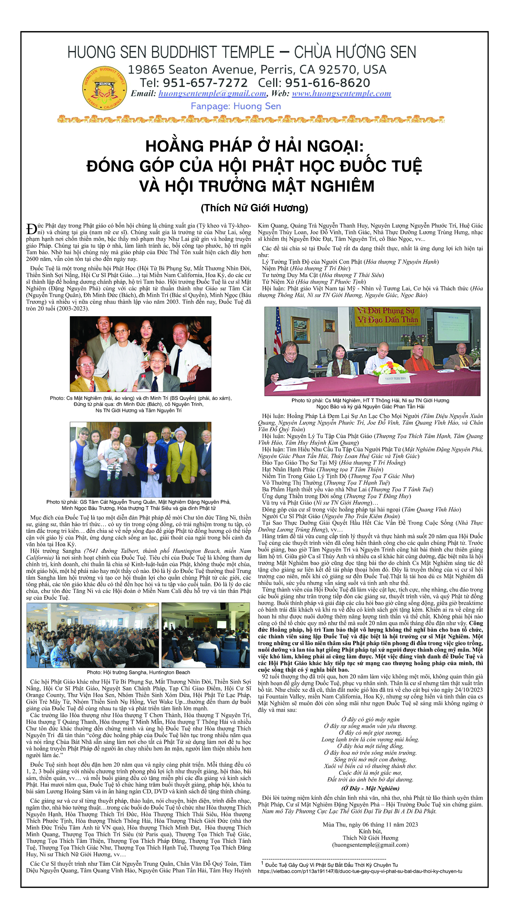Hoằng Pháp Ở Hải Ngoại: Đóng Góp Của Hội Phật Học Đuốc Tuệ Và Hội Trưởng Mật Nghiêm