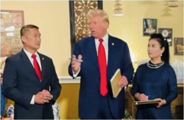 "Vì điều gì đó, tôi không biết đó là gì, bạn sẽ phải giải thích, nhưng cộng đồng người Việt yêu mến tôi và tôi yêu mến họ", Trump nói khi một số người chứng kiến hô vang "USA!"