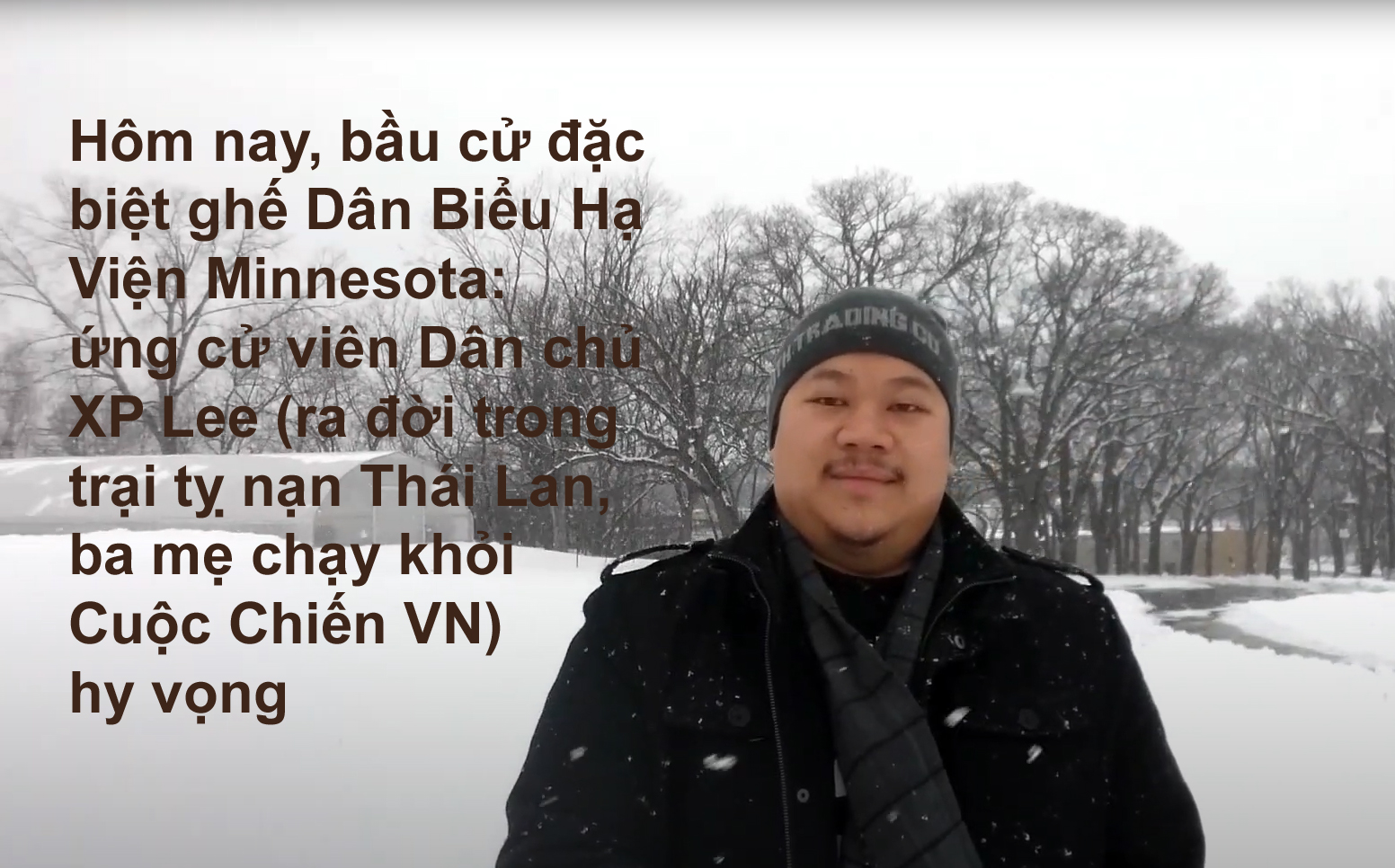 - Hôm nay, bầu cử đặc biệt ghế Dân Biểu Hạ Viện Minnesota: ứng cử viên Dân chủ XP Lee (ra đời trong trại tỵ nạn Thái Lan, ba mẹ chạy khỏi Cuộc Chiến VN) hy vọng
