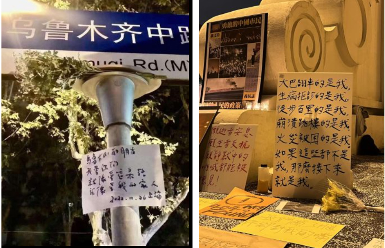 Nhiều bản tin và bài viết bằng tiếng Anh đã ghi nhận về các nhà thơ tham dự phản kháng.  Lúc đó, đột ngột gia tăng nhanh chóng của các khẩu hiệu, bài thơ, bài luận, bài hát và tác phẩm nghệ thuật phản đối, hầu hết được sáng tác bởi người dân thường và sinh viên đại học từ Trung Quốc và trên toàn thế giới. Hầu hết các bài thơ đều không ghi tên tác giả. Thơ viết lên giấy rồi treo nơi cột đèn ngoài phố, tượng đá sân chùa. Lúc đó, cuộc biểu tình trên đường Urumchi ở Thượng Hải có lẽ là nổi bật nhất. Điều này có lẽ phản ánh tầm quan trọng mang tính biểu tượng của Thượng Hải trong địa chính trị của đất nước TQ. Có thể nói, cuộc biểu tình ở Thượng Hải là một trong những cuộc biểu tình nhạy cảm nhất về mặt chính trị, khi một số người biểu tình yêu cầu Tập Cận Bình từ chức và chấm dứt chế độ độc đảng ở Trung Quốc. Những người biểu tình ở Thượng Hải đã tạo nên mối liên hệ giữa những đau khổ của người dân ở hai thành phố: Thượng Hải và Urumchi. Đêm ngày 26 tháng 11/2022, một tờ giấy khổ A4 được dán trên biển báo đường Urumchi, trên đó có một bài thơ viết tay bốn dòng, không có tựa đề: