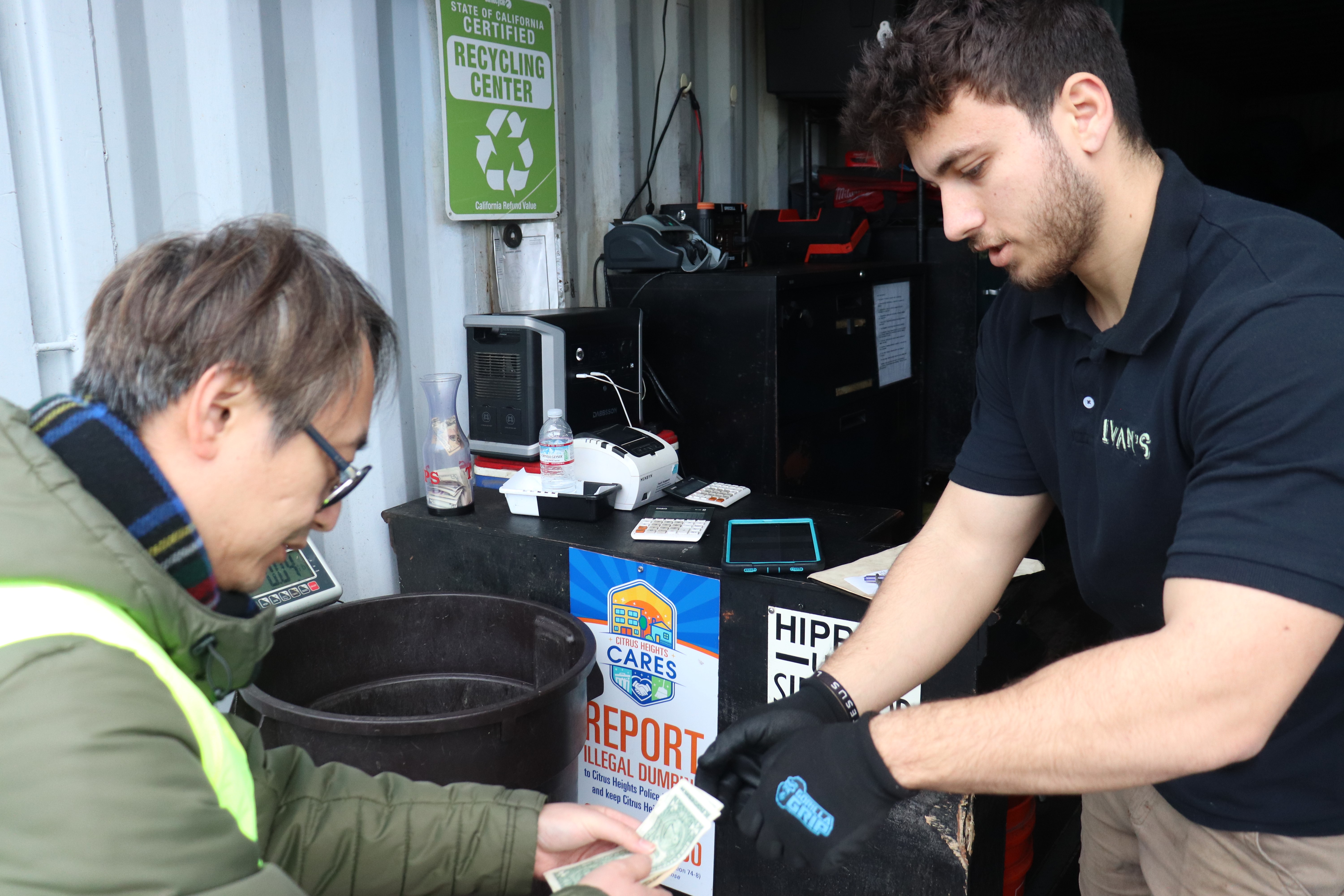 Bảo đảm các chai, lon và các loại chai có nhãn CRV (California Redemption Value)- (khoản hoàn tiền tái chế của bang California) bao gồm cả chai rượu vang và rượu mạnh được làm sạch và để khô trước khi mang đến hơn 1,300 điểm thu gom tái chế để đổi tiền mặt. Có thể tìm địa điểm gần nhà tại trang mạng: RecyclingReimaginedCA.com/cash-for-crv. Cũng có thể bỏ chúng vào thùng xanh tại nhà.