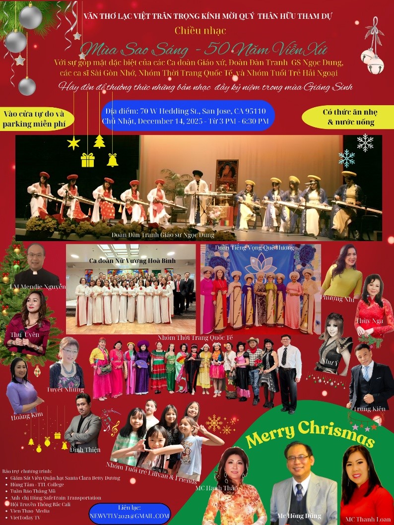 Thi Văn Đàn Văn Thơ Lạc Việt (VTLV), một văn đàn tồn tại ở Miền Bắc California trên ba chục năm, do những cố văn thi sĩ gạo cội như Hà Thượng Nhân, Đông Anh, Ngô Đình Chương … sáng lập và gìn giữ rồi trao lại cho những lớp người sau, như nhà thơ Chinh Nguyên v.v… cho đến hiện tại là “Chàng Không Quân” Lê Văn Hải. Những mùa Noel trước, VTLV đều tổ chức Chiều Giáng Sinh thật quy mô, thật bài bản, với nhiều tiết mục văn nghệ phục vụ cộng đồng.