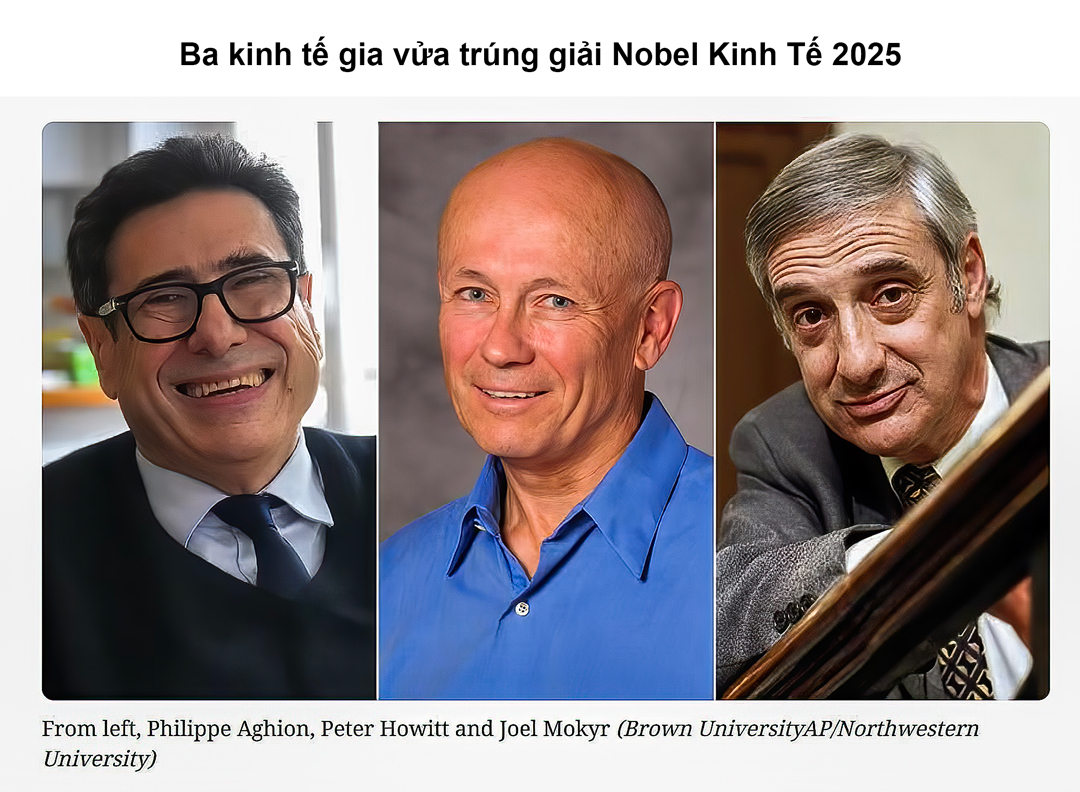Giải Nobel Kinh tế năm 2025 đã được trao cho Joel Mokyr của Northwestern University, Philippe Aghion của Collège de France và London School of Economics, và Peter Howitt của Brown University vì công trình nghiên cứu về tăng trưởng kinh tế dựa trên đổi mới sáng tạo.