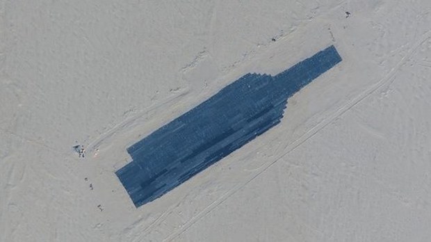 Hồi cuối tuần qua, Maxar Technologies công bố hình ảnh vệ tinh cho thấy những cấu trúc trông giống một tàu sân bay hoàn chỉnh và ít nhất hai tàu khu trục lớp Arleigh Burke tại một khu bị nghi là trường bắn ở sa mạc Taklamakan thuộc vùng Tân Cương.