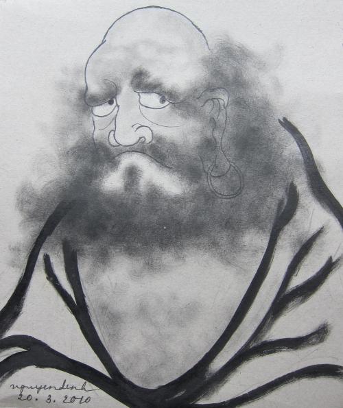 Một chiều mưa tháng 10 năm 2010, sau khi đi ra vùng lũ Quảng Bình về, tôi ghé rủ Lê Minh Phong cùng tôi đến thăm ông, Phong biết nhà, từng nhiều lần đến chơi, trò chuyện và uống rượu với ông. Cũng xin nói thêm, riêng về văn nghệ trẻ, ở Huế nói riêng Việt Nam nói chung, có lẽ chỉ có Lê Minh Phong và Nguyễn Lãm Thắng gần ông nhất. Và thường thì ông ít mời khách uống rượu, ông có nước trắng, nước trà và rượu, khách thân thì mời trà mời rượu, khách sơ ông mời nước trắng vì lý do “bà nhà chưa kịp đun nước sôi để pha trà, mong thông cảm”. Thắng Và Phong có thể ngồi cả buổi chiều, uống rượu, xem tranh, đọc tranh và nghe ông diễn giải về những bức Đạt Ma Tổ Sư do ông vẽ. Dường như ngoài thơ, ông vẽ Đạt Ma Tổ Sư nhiều nhất. Và có một điểm lạ trong tranh của ông là bức Đạt Ma Tổ Sư nào cũng trông rất giống Trần Vàng Sao.