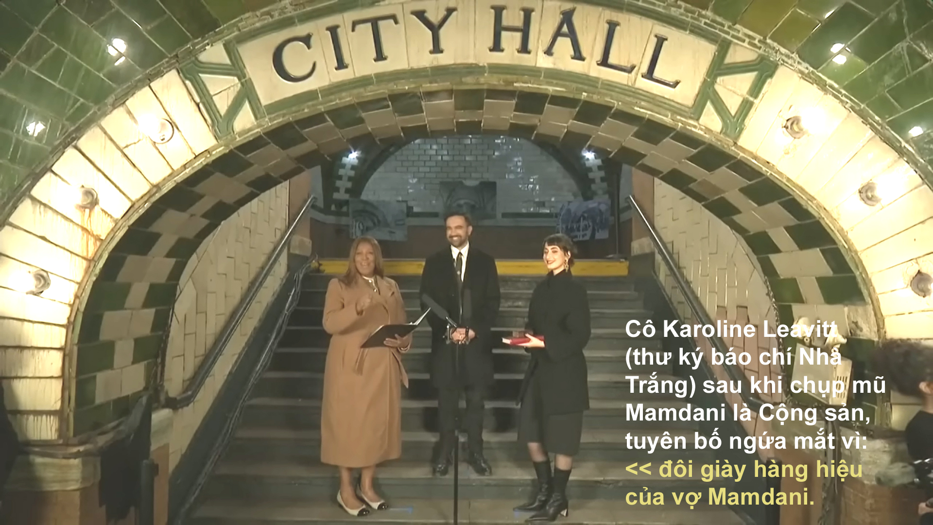Cô Leavitt - thư ký báo chí Nhà Trắng - cáo buộc cô Rama Duwaji đạo đức giả khi đi đôi bốt hiệu Miista trị giá 630 đô la tại lễ nhậm chức của Mamdani trong một đường hầm tàu ​​điện ngầm bỏ hoang.