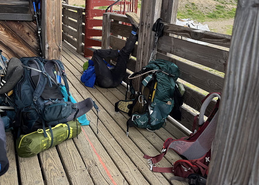 Khi đi bộ đường trường, chuyện mang theo vật dụng trong ba-lô cần được cân nhắc kỹ lưỡng vì những trường hợp như vậy.  Lúc nóng lúc lạnh chẳng lường được.  Tất cả những thứ này đều cần phải nhẹ ký (dưới 300g mỗi món, càng nhẹ càng tốt), waterproof (backpack, rain cover và áo mưa), và nhất là áo quần làm bằng vải sweat-wicking và quick-dry vì khi giặt cần phải khô qua đêm (vải cotton vừa giữ mồ hôi mà lại lâu khô).