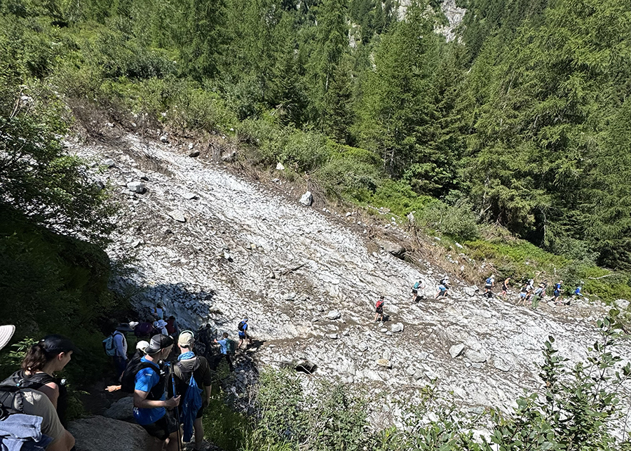 Đoạn đường zig-zag (switchback) xuống Refuge de Miage