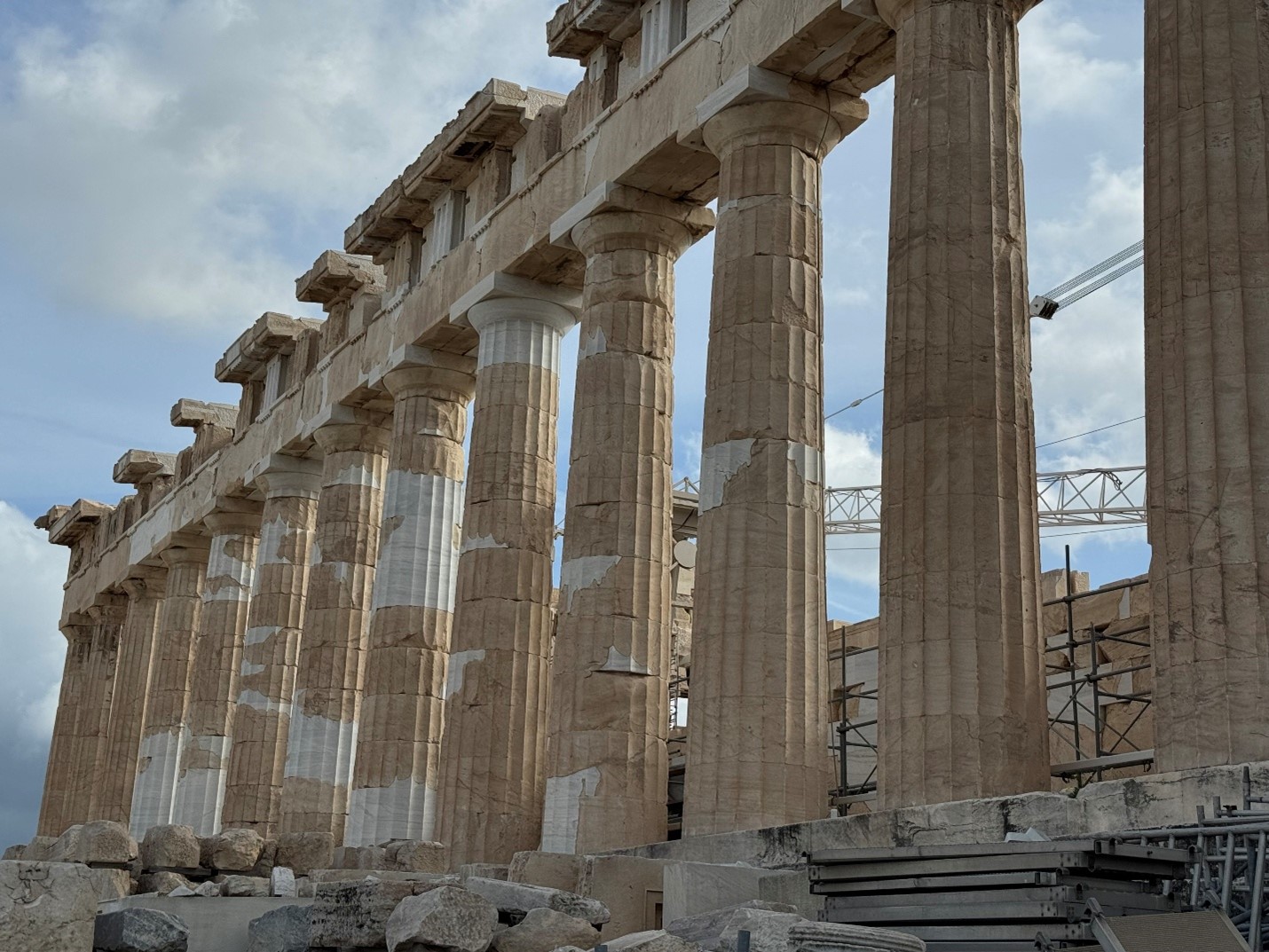 Xa xa phía chân trời, ánh dương tỏa nắng ấm từ phía biển Aegean xanh màu ngọc biếc, những tia nắng đầu tiên lướt qua bầu không khí rộn ràng một ngày mới cho người dân Athens. Ánh sáng dịu dàng, óng ả, chiếu lên từng vết nứt, mảng tường, từng đường chạm khắc mờ còn sót lại, khiến khu di tích như bắt đầu hồi sinh từ một nền văn minh chưa hề tắt.
