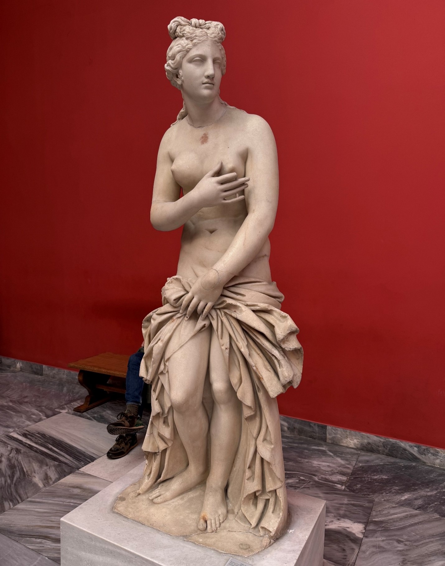 Đi qua các cổ vật trưng bày theo thứ tự từ cổ chí kim, giấc mơ ngày còn thơ tràn về, tôi thấy tôi đi lạc vào  một khung trời thần thoại, lộng lẫy trên đỉnh núi Olympus, nơi cánh cửa chia cách thế giới hữu hình và vô hình, nơi ngai vàng của chúa tể thần Zeus ngự trị, và cũng là nơi các vị thần lắng nghe lời cầu xin của loài người. Hồn tôi thoát xác, bay bổng lên cổng trời, ngắm nhìn những hàng cột đá trắng nạm vàng và không gian lung linh, kỳ ảo bên trong cung điện.