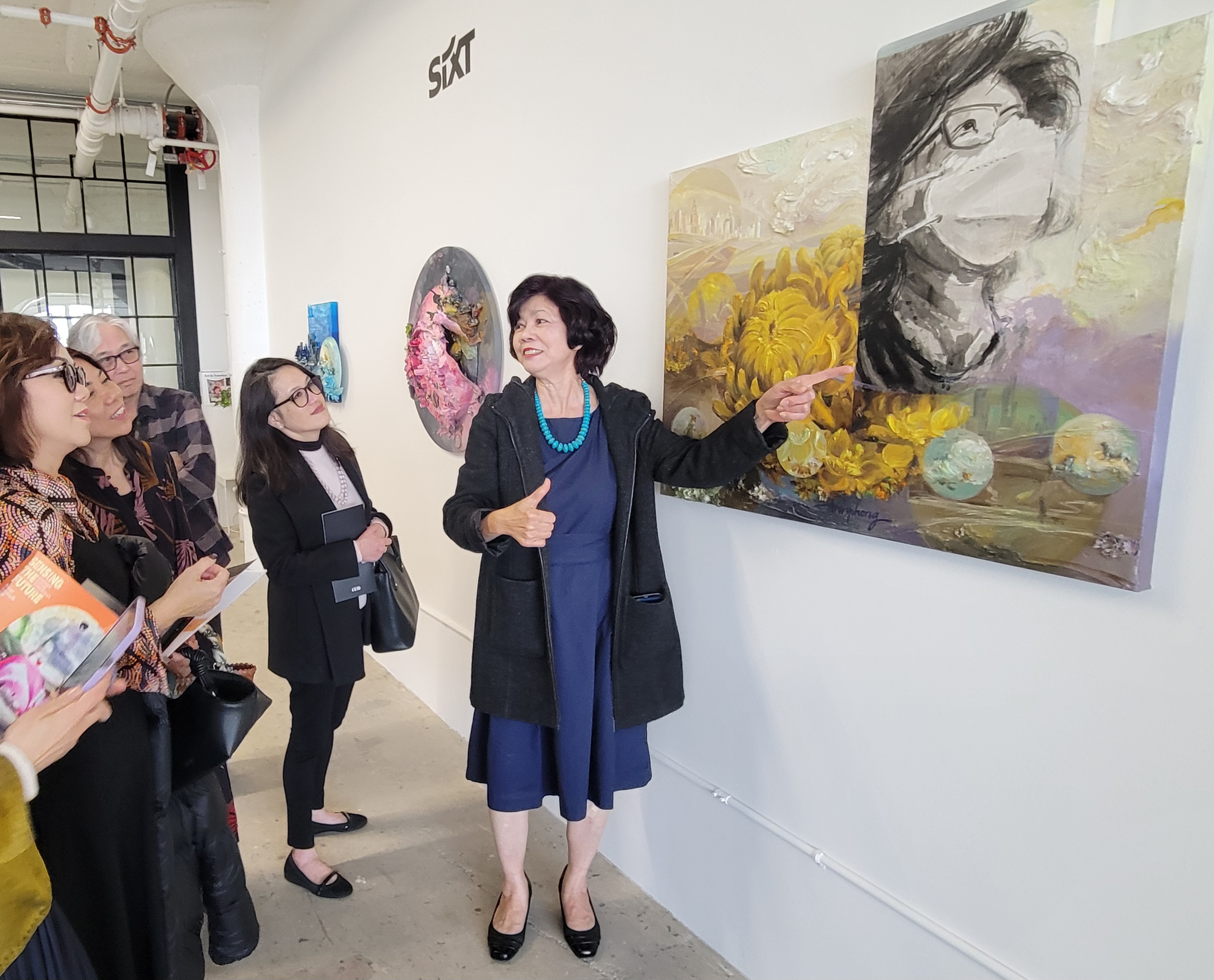 Họa Sĩ Ann Phong giải thích về họa phẩm “Looking Back, Looking Forward”, Ảnh VB.