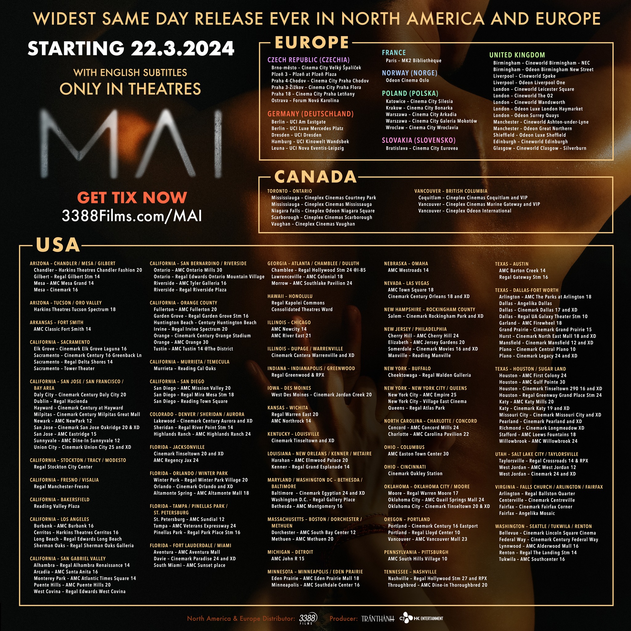 Mai - Khởi chiếu ở các rạp Hoa Kỳ, Canada và Châu Âu từ ngày 22/3. Xem các địa điểm trên để tìm rạp chiếu phim Mai gần nhà.