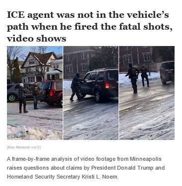 -- Minnesota: Bà Mẹ Ba Con 37 Tuổi Bị ICE Bắn Chết; Video Cho Thấy Viên Đặc Vụ ICE Không trong lộ trình xe.