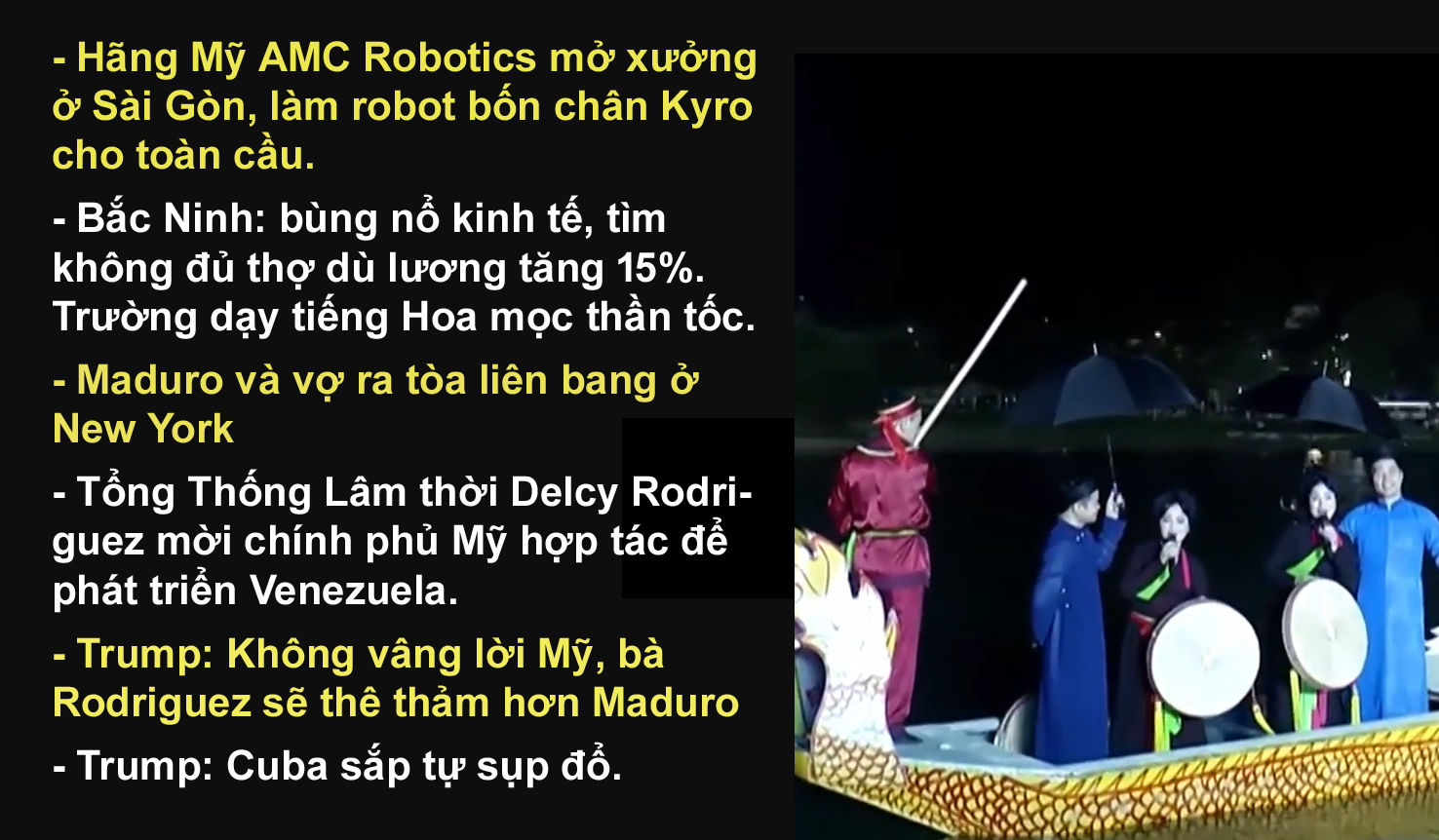 - Cuba: 2 ngày quốc tang cho 32 công dân Cuba trong nhóm cận vệ cho Maduro bị lính Mỹ bắn chết.
