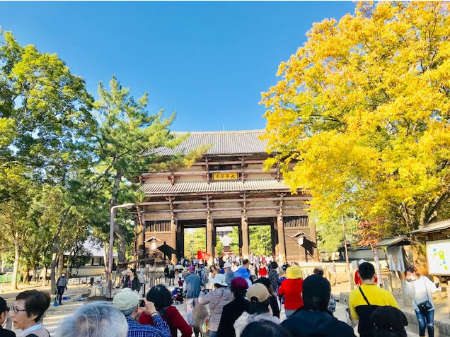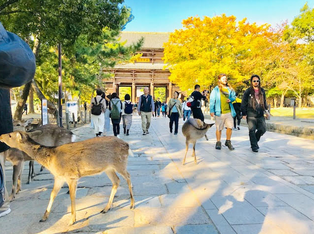 Hôm Thứ Sáu ngày 8 tháng 11/2019, mình hành hương ngôi chùa nhiều kỷ lục thế giới: Todai-ji tức Đông Đại Tự, xây từ thế kỷ thứ 8 theo lệnh Nhật Hoàng để cầu nguyện đất nước bình an. Thành phố Nara là một cố đô của Nhật Bản và ngôi chùa Todai-ji là di sản văn hoá thế giới UNESCO. Mình thấy hình ảnh quen thuộc: dọc một lối vào chùa là đủ thứ hàng quán bán kỷ vật, thức ăn, nước uống. Nai đi lại trong khuôn viên sân ngoài, dạn dĩ tự nhiên với du khách. Một con nai theo níu áo của mình, ngậm ướt một vạt áo.