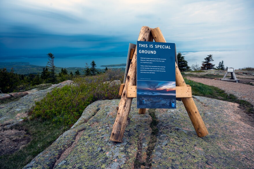 Bảng thông tin về tác động của biến đổi khí hậu tại công viên quốc gia Acadia, bang Maine. Một số bảng như thế này đã bị tháo bỏ trong năm nay.