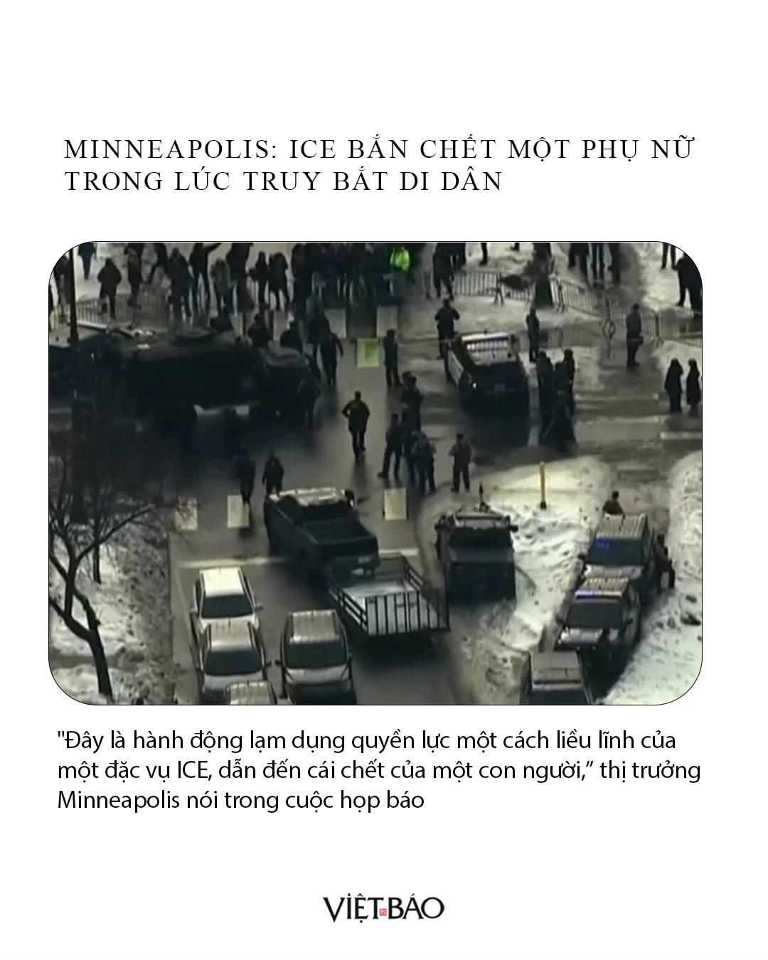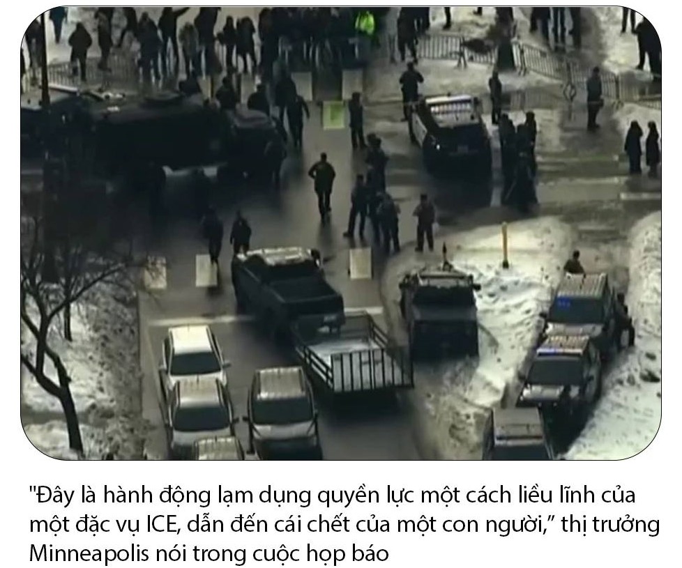 – Sáng Thứ Tư, tại khu Nam Minneapolis, một nhân viên thuộc Cơ quan Di trú và Thuế quan Hoa Kỳ (ICE) đã nổ súng bắn chết một phụ nữ trong lúc lực lượng liên bang thi hành chiến dịch truy quét di dân. Vụ nổ súng ngay lập tức làm dấy lên biểu tình và phản ứng gay gắt từ chính quyền địa phương.