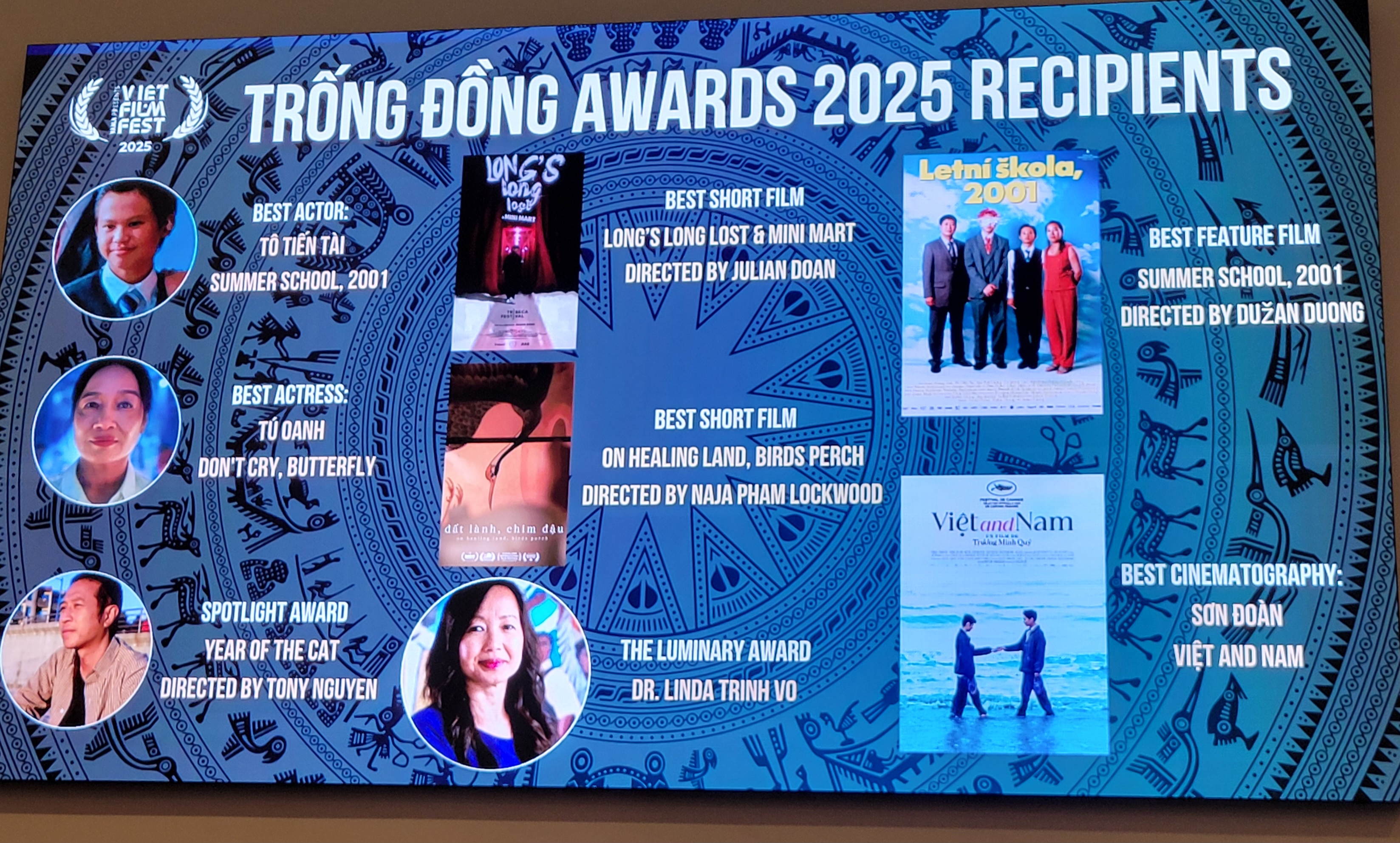 Gala Giải Trống Đồng Viet Film Fest 2025 được tổ chức trong bầu không khí thân tình, giàu tính văn hóa vào tối Chủ Nhật 12 tháng 10 tại Viện Bảo tàng Bowers, Santa Ana. Năm nay, lần đầu tiên có thêm hạng mục quay phim xuất sắc nhất, bên cạnh các giải thưởng quen thuộc: Nam/Nữ diễn viên chính xuất sắc nhất, Giải Spotlight, Giải Trống Đồng của Ban Giám Khảo dành cho phim ngắn và phim dài xuất sắc nhất…